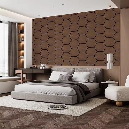 Enhance the visual and acoustic quality of your space with our Wood Oak Hexagon Acoustic Panels. These easy-to-install panels offer excellent sound insulation and a sophisticated woodgrain finish, perfect for any setting.