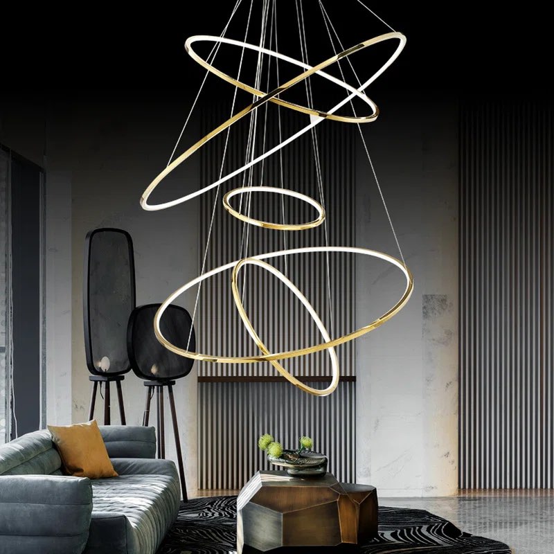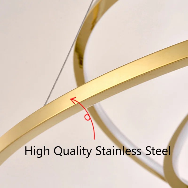 Minimalist 5 Tiers LED Pendant Lighting Stainless Steel Living Room Extra-Slim Hoop Chandelier in Gold with Natural Light