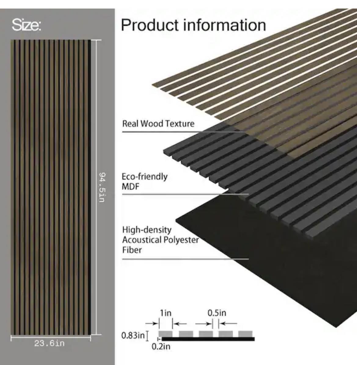 Beautiful variation of dark, warm wood tones creates a deep smoky appearance. Add a touch of hotel luxury with these easy to install panels that can transform the walls and ceilings of residential and commercial properties. Material-Real wood walnut veneer, dark colored MDF core, recycled felt backing.