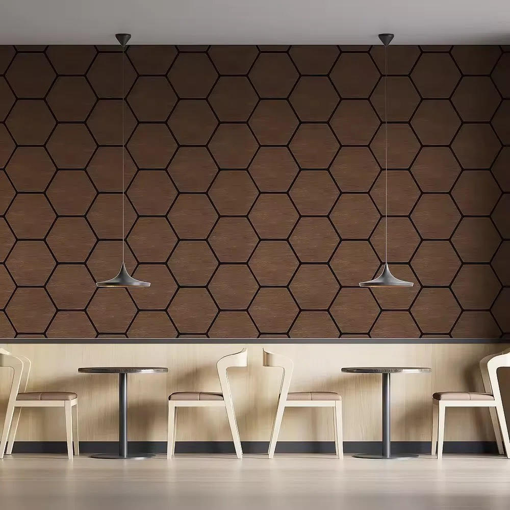 Diollo acoustic hexagon wall panel is impact-resistant and features sound-absorbing properties. Specifically designed for use in balconies, office decorations, hotel interiors, store decorations, and restaurant interiors, our luxurious decorative acoustic hexagon wall panel models are utilized in wall embellishments. Our products are easy to clean and can be easily installed.
