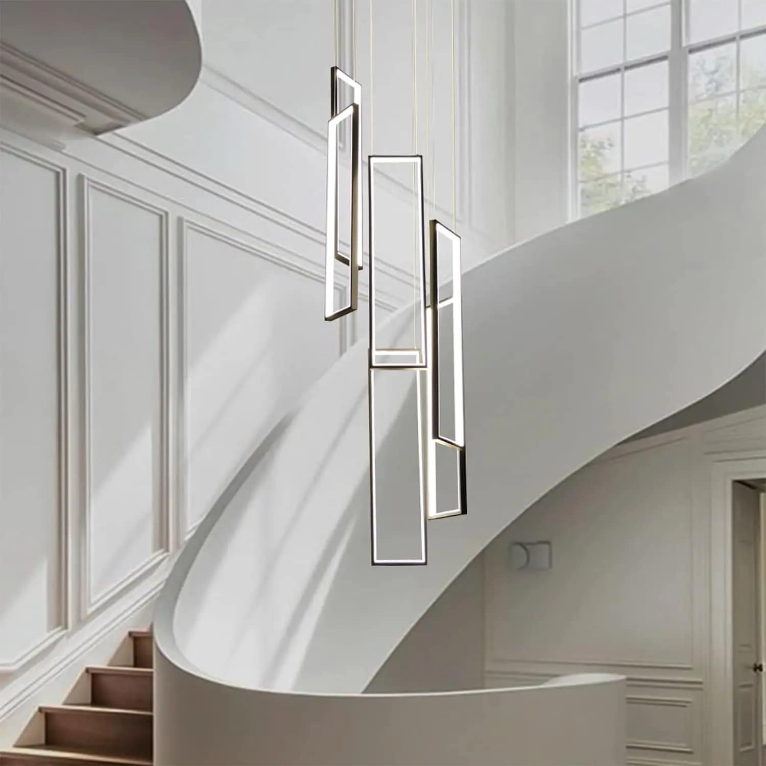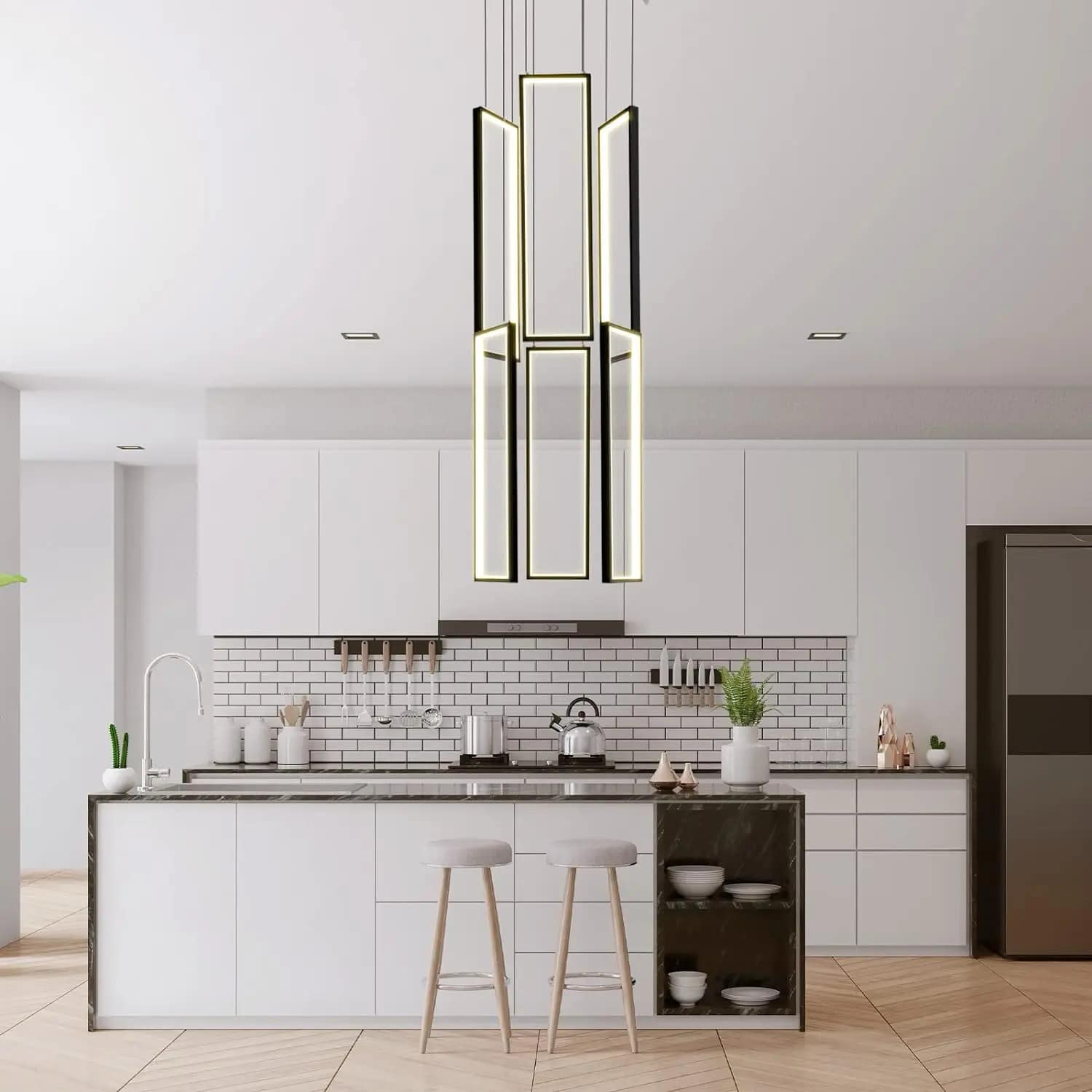 This modern led chandelier features 6 rings that can be arranged in diverse positions to create your own look, frame rectangle pendant light adjust them free to make a statement in any décor. Entryway light fixture hanging Its LED-lit frame also brings energy-saving illumination to any room. The modern chandelier, Frosted Metal Silicone anti-corrosion not easy to scratch, rectangular chandelier modern easy to clean better light transmission and heat dissipation, geometric ceiling lamp, and creates a warm atmosphere.