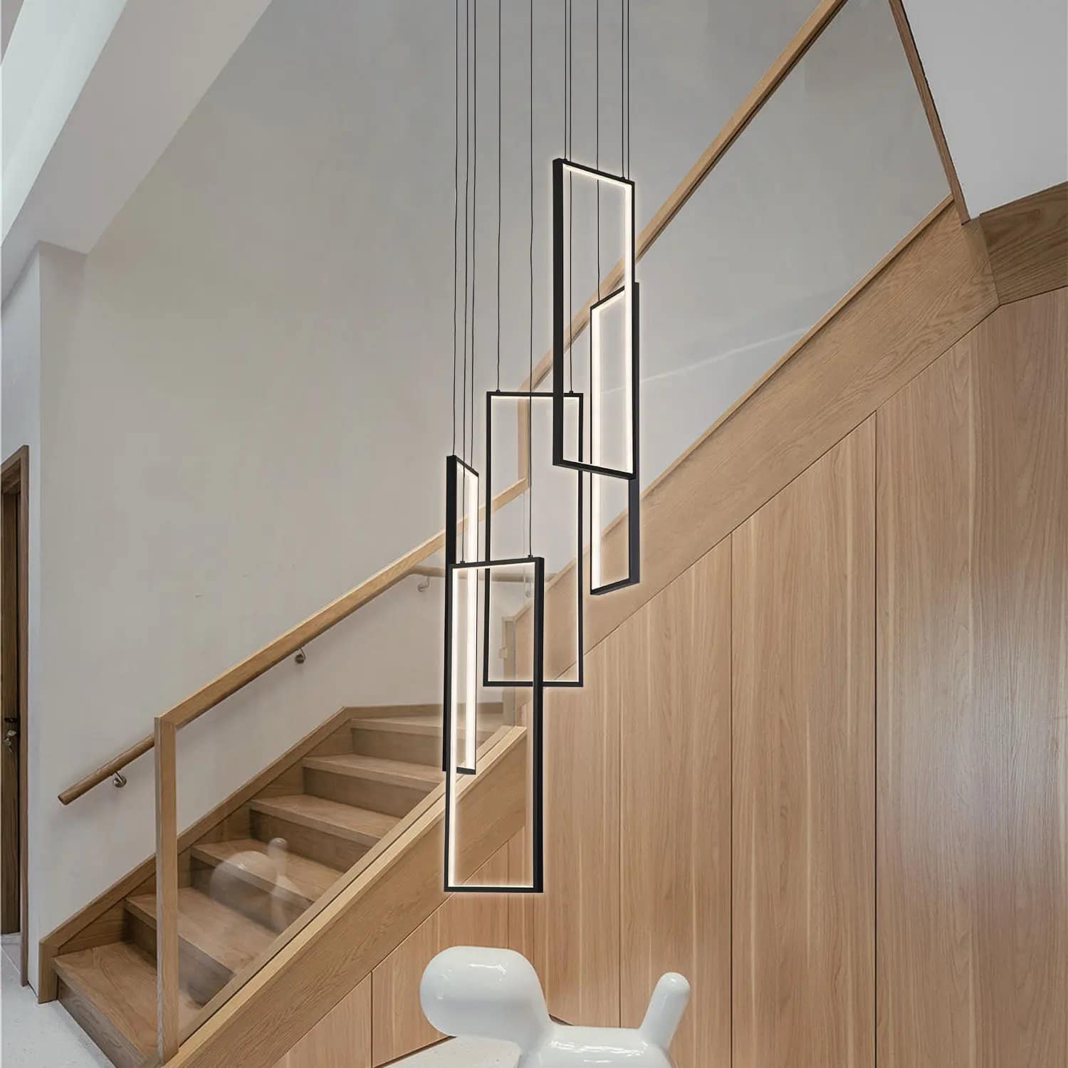 Modern Led Chandelier Adjustable Black 6 Rings Rectangle
