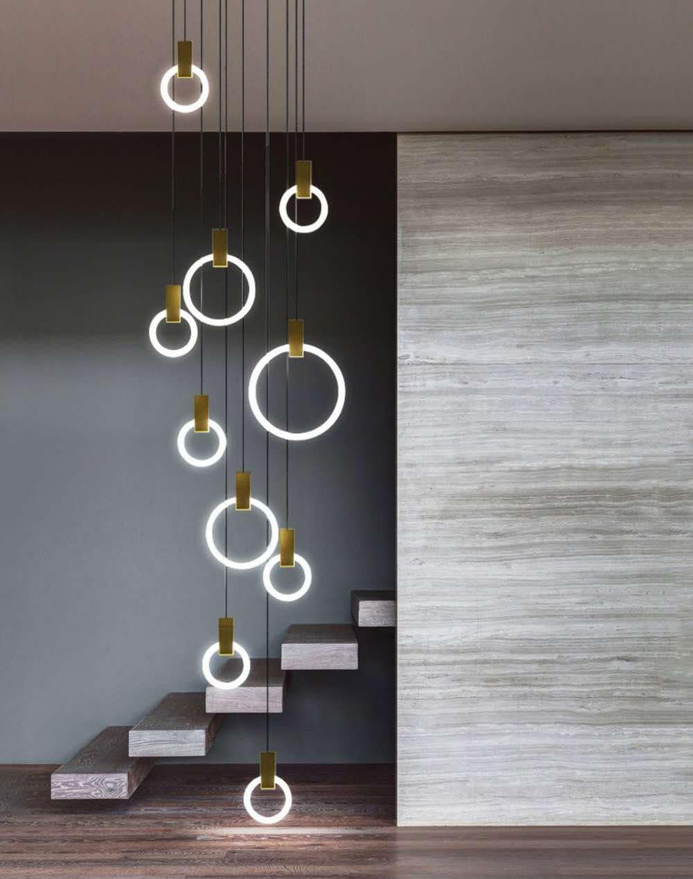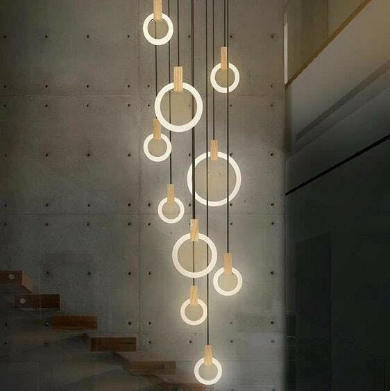 Modern and simple chandelier design, circular metal chandelier, high-transmittance acrylic lampshade, the light is natural and soft, the aluminum lamp body has good heat dissipation, and the wooden decorative chandelier can supplement the space decoration and add more to your home decoration.